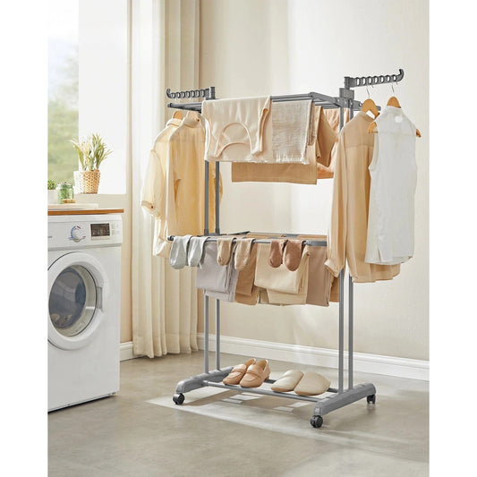 Étendoir à linge haut pliable 4 niveaux avec roulettes