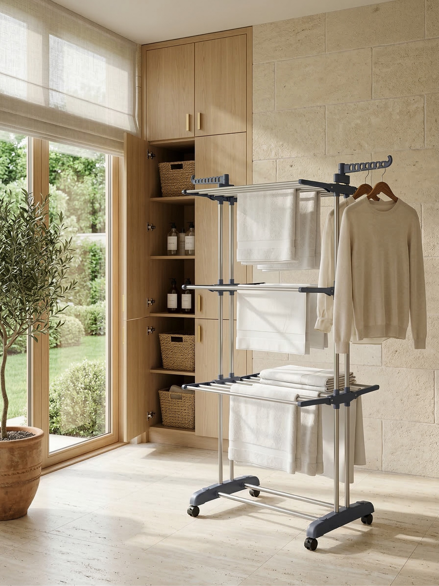 Étendoir à linge effet bois – élégant, robuste et pensé pour le quotidien
