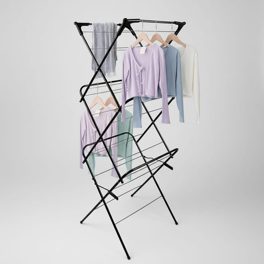 Étendoir à linge haut pliable 4 niveaux avec roulettes