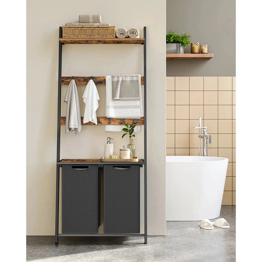 Panier à Linge Double Compartiment 100L + Étagère et Poches Latérales