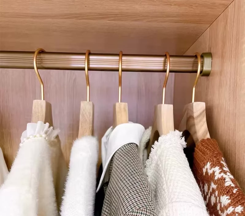 Fabriqués en bois de cannelle massif, ces cintres dégagent une odeur naturelle qui aide à absorber l’humidité et à préserver la fraîcheur des tissus. Les crochets en métal champagne poli ajoutent une touche raffinée tout en garantissant solidité et durabilité.