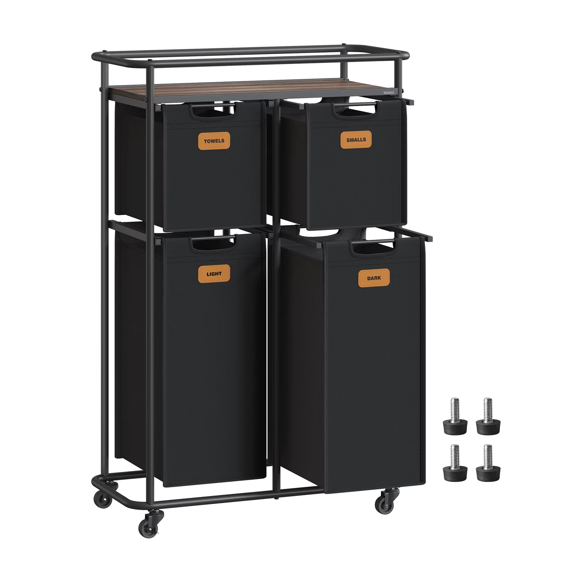 Dites adieu aux vêtements qui traînent grâce à ce rangement pour linge sale pratique et spacieux. Avec ses 4 compartiments, ses sacs amovibles et son étagère de rangement, il simplifie vos journées de lessive.